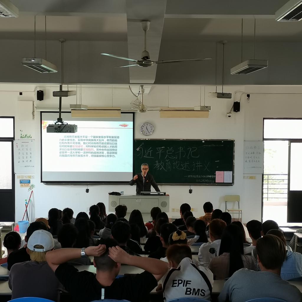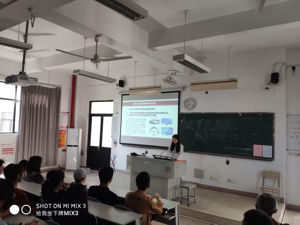 接著,胡濟(jì)林老師給同學(xué)們作了《解讀習(xí)近平總書記教育思想》的報(bào)告。胡老師從教育強(qiáng)則國(guó)家強(qiáng)、高校立身之本在于立德樹人、對(duì)當(dāng)代高校學(xué)生充分信任、寄予厚望等三個(gè)方面解讀了習(xí)近平總書記教育思想。胡老師講課旁征博引,形象生動(dòng),他指出,習(xí)近平總書記教育思想內(nèi)涵豐富,思想深邃,今天的講解只是一個(gè)開端,今后還要多組織類似的活動(dòng),胡老師希望同學(xué)們牢記習(xí)近平總書記的諄諄教導(dǎo),將理論學(xué)習(xí)與自我成長(zhǎng)結(jié)合起來(lái),做一個(gè)有理想有本領(lǐng)有擔(dān)當(dāng)?shù)臅r(shí)代新人。