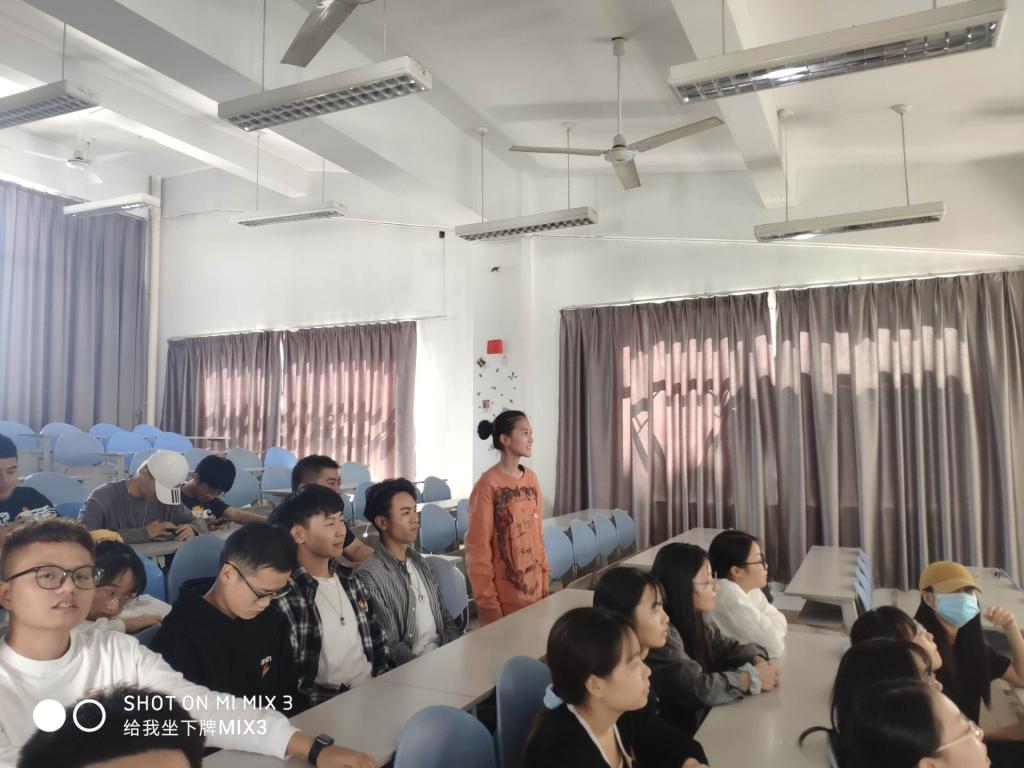 然后,團(tuán)支書林玉玲匯報(bào)了她學(xué)習(xí)《習(xí)近平總書記關(guān)于教育重要論述講義》的體會(huì),并與同學(xué)們展開互動(dòng)。