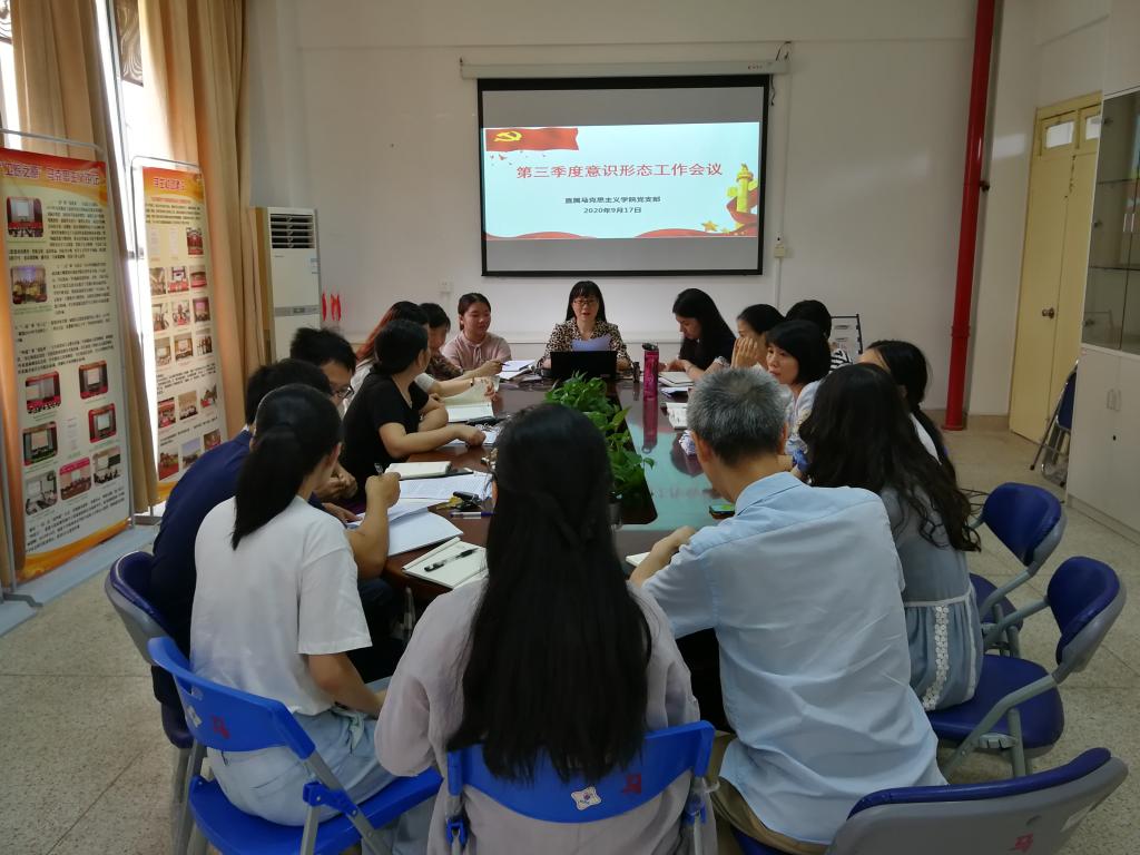2020年9月17日上午,直屬馬克思學院黨支部在行政樓107馬院會議室召開2020年第三季度意識形態(tài)工作會議。會議由直屬馬克思學院黨支部書記熊美蘭主持,直屬馬克思學院黨支部全體黨員參加了會議。