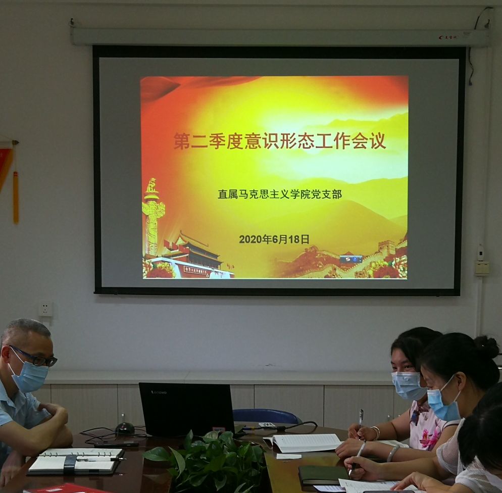2020年6月18日上午,直屬馬克思主義學院黨支部在行政樓107會議室召開第二季度意識形態(tài)工作會議。會議由支部書記熊美蘭主持,支部全體黨員同志參加了會議。