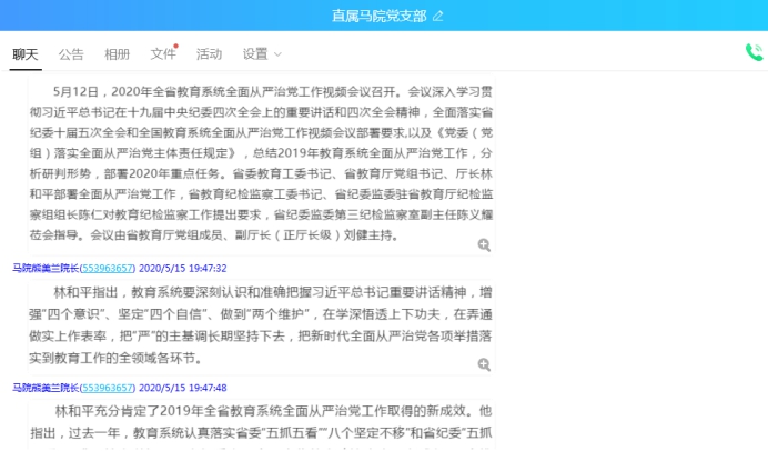 5月15日晚上7點(diǎn)30分,直屬馬克思主義學(xué)院黨支部在QQ群線上召開(kāi)學(xué)習(xí)會(huì)暨新冠肺炎疫情防控工作會(huì)?;顒?dòng)由馬院黨支部書(shū)記熊美蘭主持,馬克思主義學(xué)院全體黨員參加了活動(dòng)。