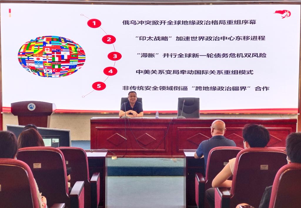 曾武祈著重梳理了當前復雜多變的國際局勢、黨和國家面臨的安全挑戰(zhàn)及其背后動因,為黨員們帶來了一堂理論深刻、視野開闊、內(nèi)容豐富,極具吸引力和感染力的黨課。在他的講述中,全體黨員充分感受到了中國在全球變局中化危為機、勇毅前行的卓越能力。曾武祈指出,黨的二十大必將擘畫發(fā)展新藍圖,贏得更加偉大的勝利和榮光。廣大黨員教師應比以往更加堅定地迎接世界的變革與挑戰(zhàn),以實際行動詮釋自己對國家和民族的責任和擔當。