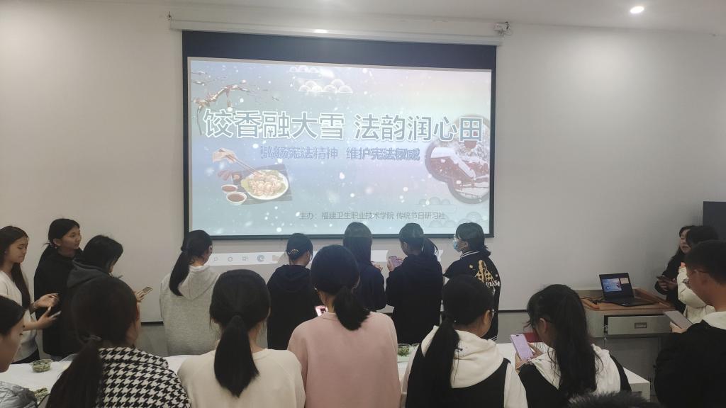 2024年12月5日,為推動(dòng)中華優(yōu)秀傳統(tǒng)文化與法治理念的深度融合,馬克思主義學(xué)院第一黨支部全體黨員教師在“憲法宣傳周”來(lái)臨之際,于“一站式”學(xué)生社區(qū)指導(dǎo)學(xué)生社團(tuán)開(kāi)展以“餃香融大雪,法韻潤(rùn)心田”為主題的特色活動(dòng)。
