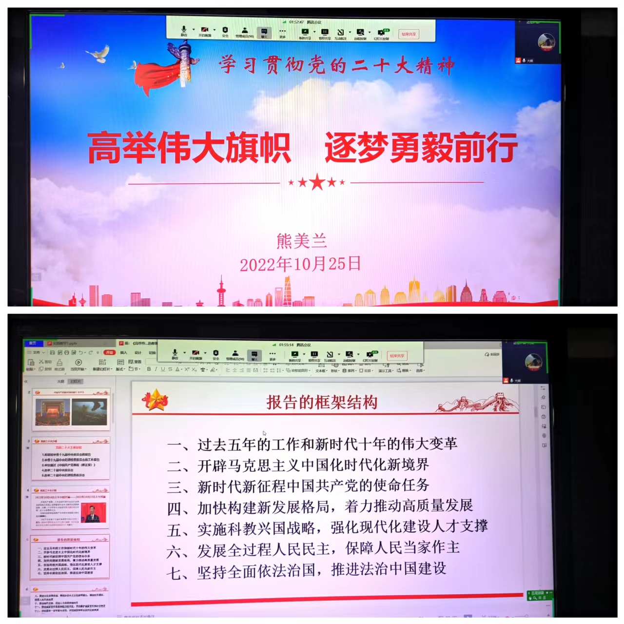黨的二十大報(bào)告是我們黨團(tuán)結(jié)帶領(lǐng)全國各族人民在新時(shí)代新征程堅(jiān)持和發(fā)展中國特色社會(huì)主義的政治宣言和行動(dòng)綱領(lǐng)。為引導(dǎo)同學(xué)深入學(xué)習(xí)貫徹黨的二十大精神,全面貫徹習(xí)近平新時(shí)代中國特色社會(huì)主義思想,熊美蘭老師于2022年10月25日、28日,分別為21級(jí)“哲學(xué)與人生”選修課班,22級(jí)護(hù)理301、302班等近二百位學(xué)生作題為《高舉偉大旗幟 逐夢(mèng)勇毅前行》的專題宣講。