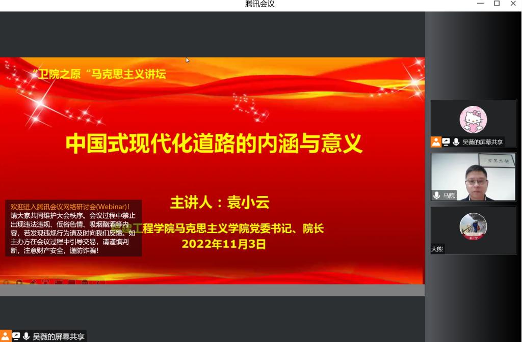 袁小云基于中國式現(xiàn)代化道路的內(nèi)涵、理論意義、實(shí)踐意義、世界意義、中國式現(xiàn)代化道路任重道遠(yuǎn)五個(gè)層面,向大家深刻揭示了中國式現(xiàn)代化不僅是黨和人民歷經(jīng)艱辛探索、創(chuàng)新突破取得的寶貴成果,更是我國實(shí)現(xiàn)中華民族偉大復(fù)興的必由之路。專題講座之后,與會(huì)師生就深刻理解習(xí)近平總書記在黨的二十大報(bào)告中有關(guān)中國式現(xiàn)代化的科學(xué)闡述與專家開展熱烈討論。