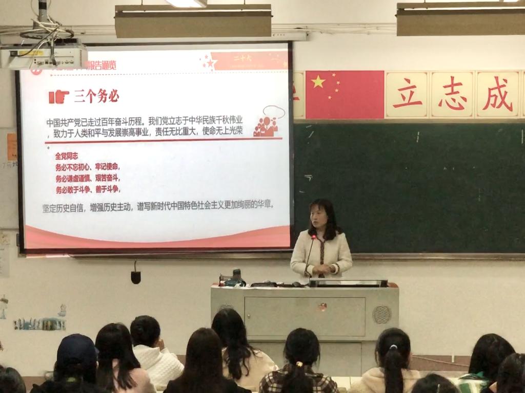 來朋珍老師從“三個務(wù)必”“五個重大原則”“五個必由之路”等方面詳細(xì)介紹了黨的二十大報告的一系列重要論點(diǎn),引導(dǎo)同學(xué)們深入學(xué)習(xí)貫徹黨的二十大精神,深刻理解黨的二十大召開的重大意義,同時也激勵同學(xué)們更加緊密地團(tuán)結(jié)在以習(xí)近平同志為核心的黨中央周圍,高舉中國特色社會主義偉大旗幟,堅(jiān)定道路自信、理論自信、制度自信、文化自信,為全面建設(shè)社會主義現(xiàn)代化國家、全面推進(jìn)中華民族偉大復(fù)興而團(tuán)結(jié)奮斗勇敢奮斗。