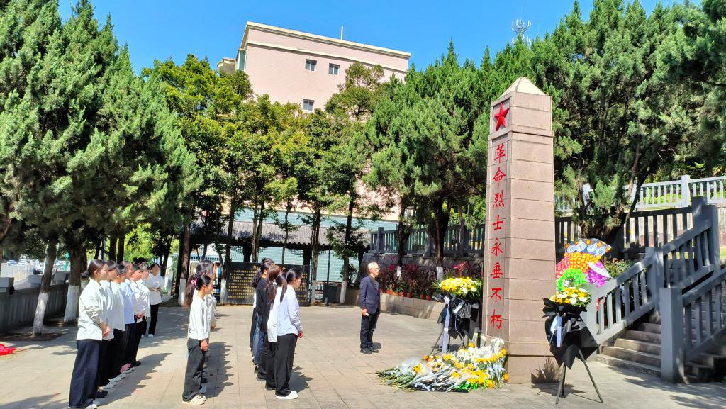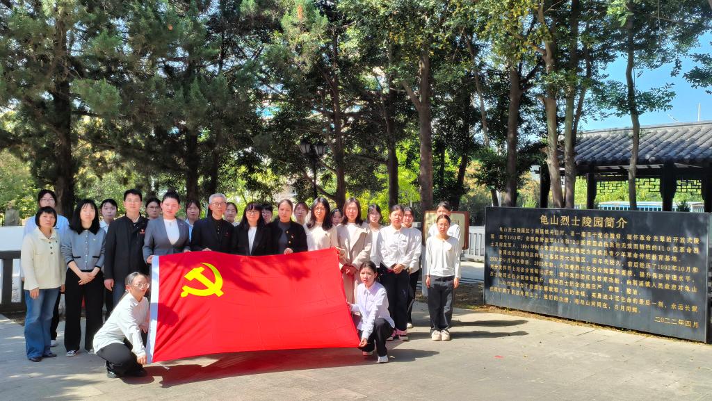 簽約儀式結束后,雙方攜手前往龜山烈士陵園開展“緬懷革命先烈 傳承紅色基因”主題黨日活動。全體黨員懷著崇敬的心情,列隊站在莊嚴肅穆的革命烈士紀念碑前;奏唱中華人民共和國國歌,向革命先烈默哀致敬;黨員代表與學生代表共同向烈士紀念碑獻花;黨員教師代表講述烈士事跡,結合黨的二十大精神談初心使命;學生代表發(fā)表感言,深切表達傳承革命精神的決心;隨后參觀陵園,擦拭烈士墓碑,清掃陵園。通過此次活動,進一步弘揚愛國主義精神,增強黨員和學生的歷史責任感和使命感。