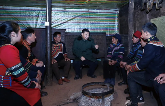 2018年2月12日,習(xí)近平在四川成都市主持召開打好精準脫貧攻堅戰(zhàn)座談會。這是11日,習(xí)近平在涼山彝族自治州昭覺縣三岔河鄉(xiāng)三河村節(jié)列俄阿木家中,同村民代表、駐村扶貧工作隊員圍坐火塘邊,共謀精準脫貧之策。