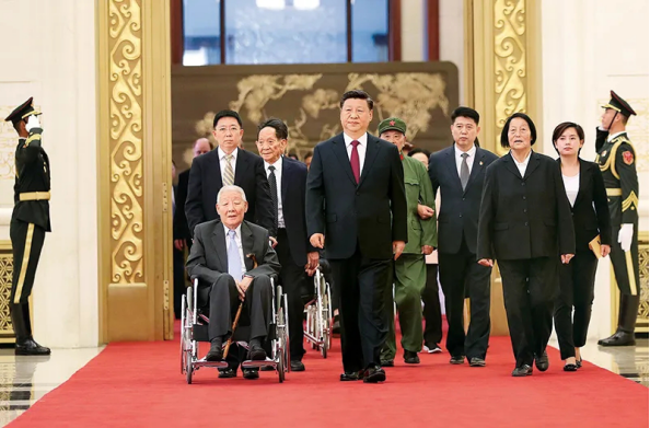 2019年9月29日,中華人民共和國國家勛章和國家榮譽稱號頒授儀式在北京人民大會堂舉行。這是習(xí)近平同國家勛章和國家榮譽稱號獲得者一同步入會場。