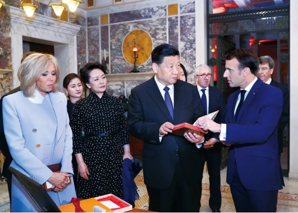 2019年3月24日,習(xí)近平在法國尼斯會見法國總統(tǒng)馬克龍。會見前,馬克龍向習(xí)近平贈送1688年法國出版的首部《論語導(dǎo)讀》法文版原著。