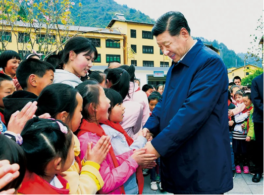 2019年4月15日至17日,習(xí)近平在重慶考察并主持召開解決“兩不愁三保障”突出問題座談會。這是15日,習(xí)近平在石柱土家族自治縣中益鄉(xiāng)小學(xué)同學(xué)生們交談。
