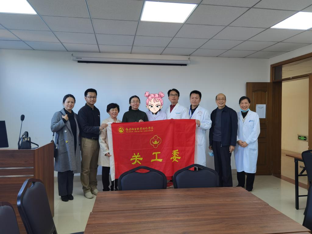 關(guān)工委一行,首先來到福建省腫瘤醫(yī)院走訪慰問正在醫(yī)院實習的18影像303班的黃同學,院方對本次慰問活動高度重視,科教科陳超主任、臨床科室姚奇?zhèn)ブ魅魏陀跋窨剖亦嵉麓褐魅我矃⒓恿舜舜挝繂柣顒?,一同為貧困同學送上愛心禮包和慰問金,并就學生的實習環(huán)境和實習情況進行座談交流。