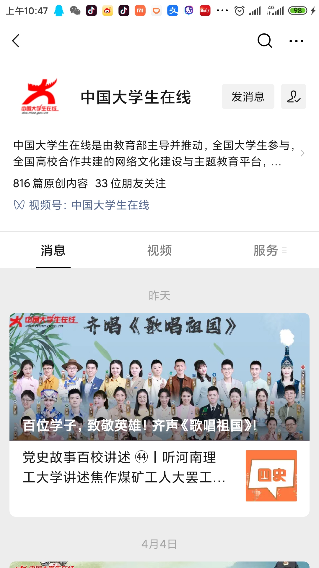 登錄步驟1:請(qǐng)使用手機(jī)微信關(guān)注中國(guó)大學(xué)生在線微信公眾號(hào)(dxsmoegovcn)。