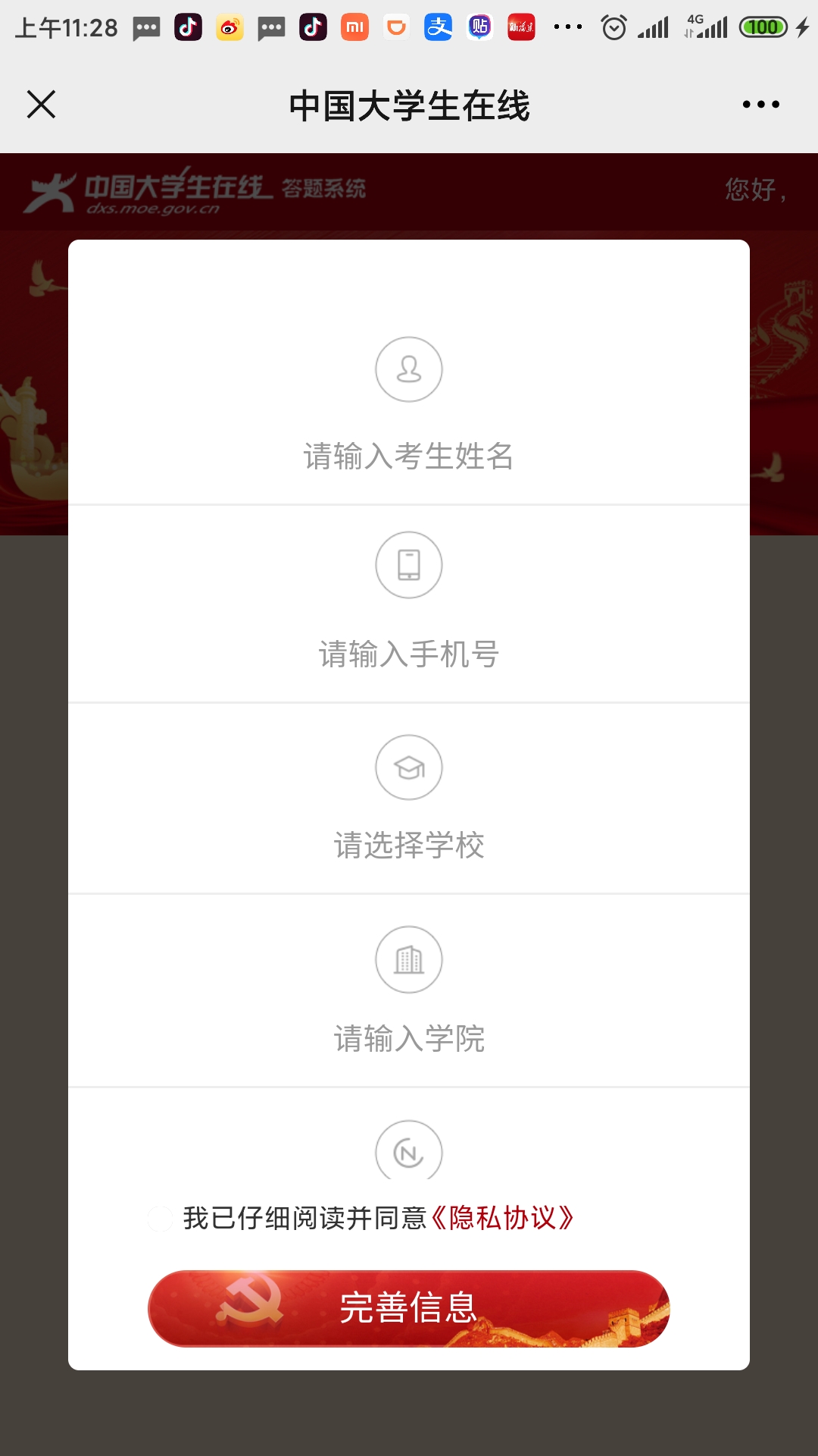 步驟4:完善有關(guān)信息,即可參與答題。