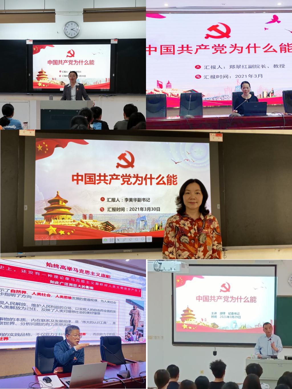 黨委副書記李美華、紀(jì)委書記游鋒、副院長(zhǎng)陳貞健、黃銘珊、鄭翠紅等校領(lǐng)導(dǎo)從中國(guó)共產(chǎn)黨具有科學(xué)的理論指導(dǎo)、堅(jiān)定的理想信念、強(qiáng)大的組織優(yōu)勢(shì)、堅(jiān)實(shí)的群眾基礎(chǔ)、徹底的自我革命等五個(gè)方面,全面闡述了中國(guó)共產(chǎn)黨創(chuàng)造中國(guó)奇跡的原因所在。校領(lǐng)導(dǎo)的開(kāi)講,引起了我校師生的廣泛熱議。