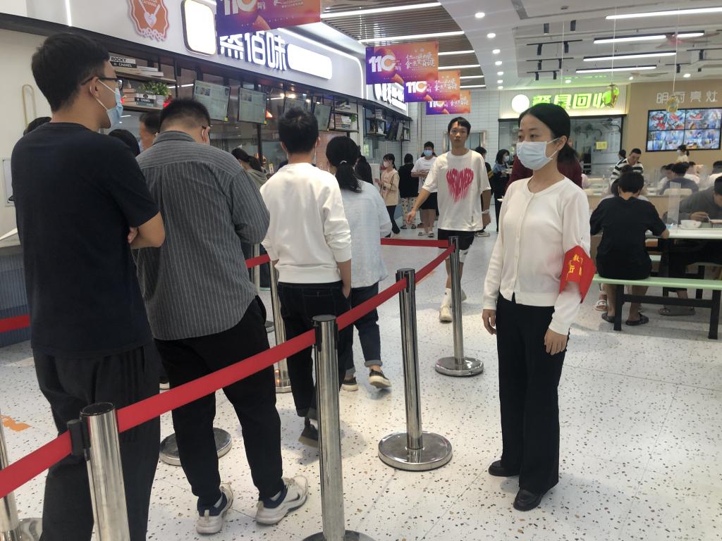宣傳教育突擊隊(duì)在各個(gè)食堂區(qū)域迅速集結(jié),主動(dòng)開展黨員志愿服務(wù),積極投入到秩序維護(hù)、防疫督導(dǎo)等各項(xiàng)工作中,以實(shí)際行動(dòng)守護(hù)校園安全。