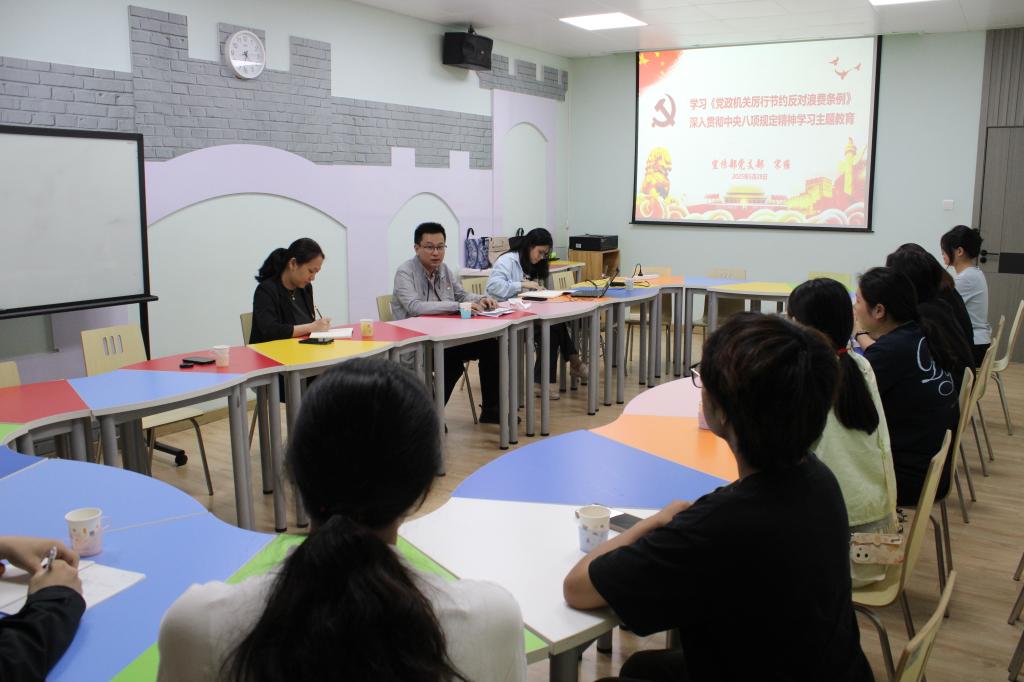 為扎實(shí)開(kāi)展深入貫徹中央八項(xiàng)規(guī)定精神學(xué)習(xí)教育,宣傳部黨支部書(shū)記宋維講授主題黨課,介紹了《黨政機(jī)關(guān)厲行節(jié)約反對(duì)浪費(fèi)條例》、學(xué)校校史和“健善仁”校園文化等內(nèi)容,倡導(dǎo)學(xué)生積極踐行厲行節(jié)約反對(duì)浪費(fèi)行為,進(jìn)一步了解學(xué)習(xí)學(xué)校悠久校史和弘揚(yáng)“健善仁”校園文化。