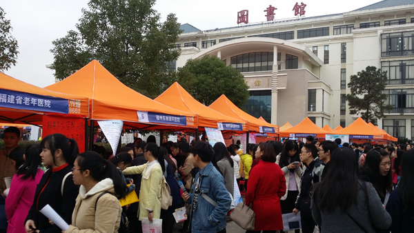 1月9日上午,福建衛(wèi)生職業(yè)技術(shù)學(xué)院2016屆畢業(yè)生供需見面會在校園圖書館前廣場舉行,吸引了全省各地147家醫(yī)藥衛(wèi)生單位參加,提供就業(yè)崗位3000多個。招聘會現(xiàn)場氣氛濃烈,人頭攢動,多家衛(wèi)生醫(yī)療單位、醫(yī)藥企業(yè)擠滿了咨詢的畢業(yè)生,用人單位也根據(jù)需求,閱覽畢業(yè)生簡歷,與畢業(yè)生親切交流、吸引人才。學(xué)院黨委書記林春明、副院長魏立娜親臨招聘會現(xiàn)場,與企業(yè)相關(guān)負(fù)責(zé)人親切交流,了解用人單位需求,各系部黨總支書記和畢業(yè)生輔導(dǎo)員到現(xiàn)場與用人單位接洽溝通,為畢業(yè)生應(yīng)聘提供指導(dǎo)和服務(wù)。福建教育電視臺和海峽都市報記者對本次招聘會情況進(jìn)行了報道。