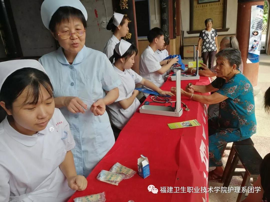 開展以“慶祝中華人民共和國成立70周年——激揚青春夢,醫(yī)心筑夢舟”為主題的三下鄉(xiāng)社會實踐活動。讓習近平新時代中國特色社會主義思想在廣大青年社會實踐中能夠入腦入心見行動。管理系關工委常務副主任王屏老師赴閩侯縣廷坪鄉(xiāng),向公眾宣傳新中國成立七十周年的文化,普及衛(wèi)生健康教育。護理系關工委老同志何菲老師赴閩清帶領志愿者們?yōu)榇迕衩赓M測血糖、量血壓、分發(fā)常用藥品,同時宣傳禁毒知識與過敏防治措施。