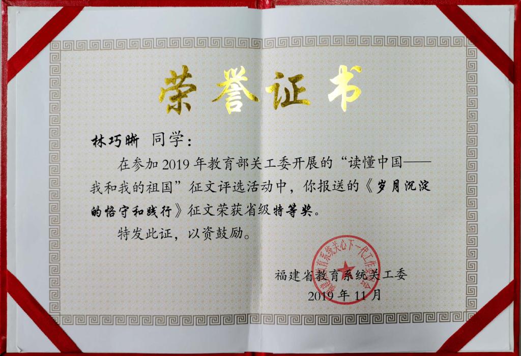 我校關(guān)工委作品獲全省“讀懂中國”主題活動特等獎