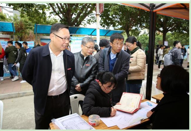 校領導高度重視畢業(yè)生就業(yè)問題,多次就做好畢業(yè)生的就業(yè)工作提出期望和要求。當日,黨委書記曾武祈、校長蘇友新、紀委書記游鋒、副校長陳貞健、副校長黃銘珊來到招聘會現場,看望用人單位代表和參加應聘的學生,詳細了解畢業(yè)生就業(yè)情況,與用人單位負責人親切交談,并聽取了他們對我校畢業(yè)生就業(yè)工作的建議。我校共建院校,西藏昌都職業(yè)技術學校王磊副校長一行也應邀前來參觀指導。