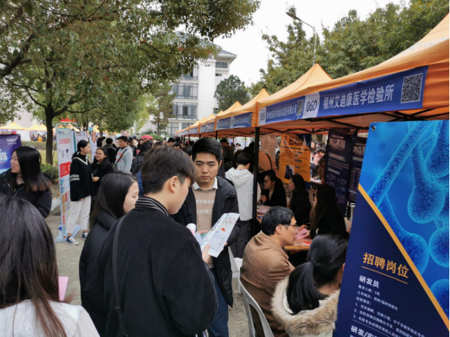 在熱烈的氛圍,井然的秩序中,畢業(yè)生積極與招聘人員會心交流,了解用人單位情況,尋找滿意的崗位,不少學生現場達成就業(yè)意向。另外,來自建甌市衛(wèi)生健康局、羅源縣衛(wèi)生健康局、福建省老年醫(yī)院、福建省級機關醫(yī)院、福建中醫(yī)藥大學附屬康復醫(yī)院等單位都招聘展位吸引了不少前來咨詢的同學,今年部分基層鄉(xiāng)鎮(zhèn)衛(wèi)生院需要的緊缺專業(yè)(如臨床醫(yī)學、醫(yī)學影像技術、醫(yī)學檢驗技術等)可以直接現場面試簽定協(xié)議,反映了我院的人才培養(yǎng)定位符合福建省基層衛(wèi)生技術人才的需求。部分單位精準定位到專業(yè),與各系聯(lián)系舉行專場宣講會,招聘會期間五個系在19個專業(yè)中共舉行宣講會20余場,收效良好。