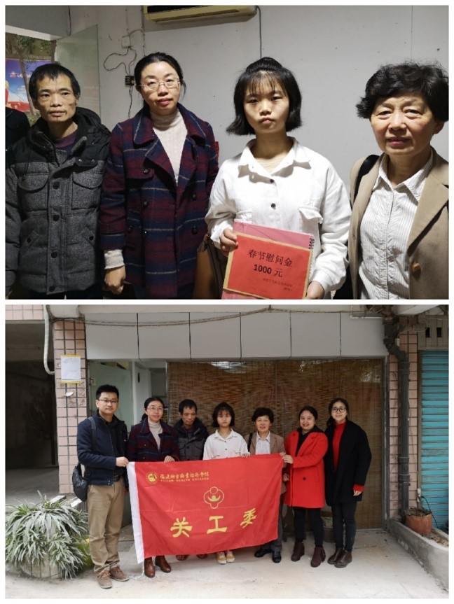 副校長、關(guān)工委副主任黃銘珊、關(guān)工委主任嚴(yán)肅、副主任陳雄、副主任黃開良以及各系二級(jí)關(guān)工委老同志,在學(xué)生工作處和各系的陪同下,來到貧困學(xué)生家里或?qū)嵙?xí)單位,深入了解貧困學(xué)生家庭情況,送上慰問金和慰問品,給他們帶去節(jié)日的問候及溫暖。