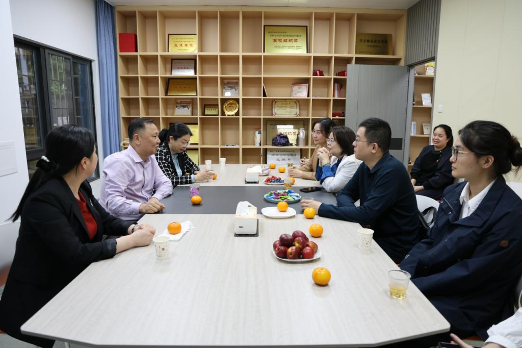 隨后,李萍一行實地考察了我校中醫(yī)藥文化館 、“一站式”學(xué)生社區(qū)學(xué)生服務(wù)中心、匠心驛站和大學(xué)生就業(yè)服務(wù)驛站。期間,校黨委書記曾武祈、副校長黃銘珊同李萍一行進(jìn)行座談交流,曾武祈詳細(xì)介紹我校發(fā)展情況及未來展望,雙方圍繞學(xué)校資助工作進(jìn)行深入探討。