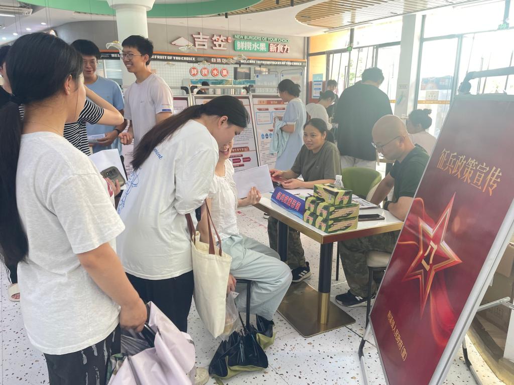 武裝部工作人員向前來咨詢的同學(xué)們細致地講解了今年的征兵條件、報名方法及相關(guān)優(yōu)待政策,深入宣傳依法服兵役的積極意義,鼓勵適齡青年積極報名應(yīng)征,報效祖國。