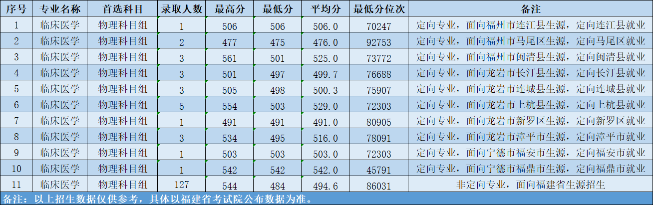 2024年福建省錄取分數(shù)及位次情況(定向專業(yè))