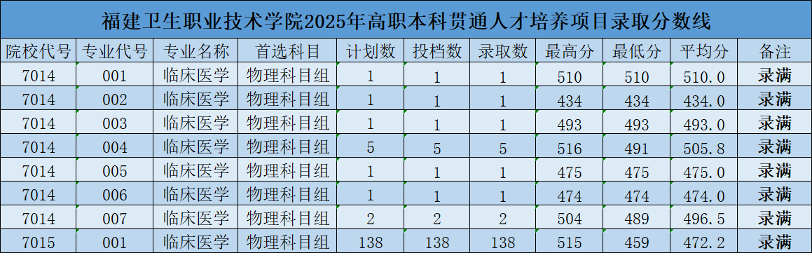 福建衛(wèi)生職業(yè)技術(shù)學(xué)院2025年福建省普通高考錄取分?jǐn)?shù)線