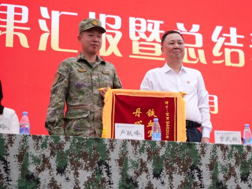 為感謝承訓(xùn)部隊(duì)及教官的辛勤付出,校黨委書記曾武祈代表學(xué)校向承訓(xùn)部隊(duì)贈(zèng)送錦旗。