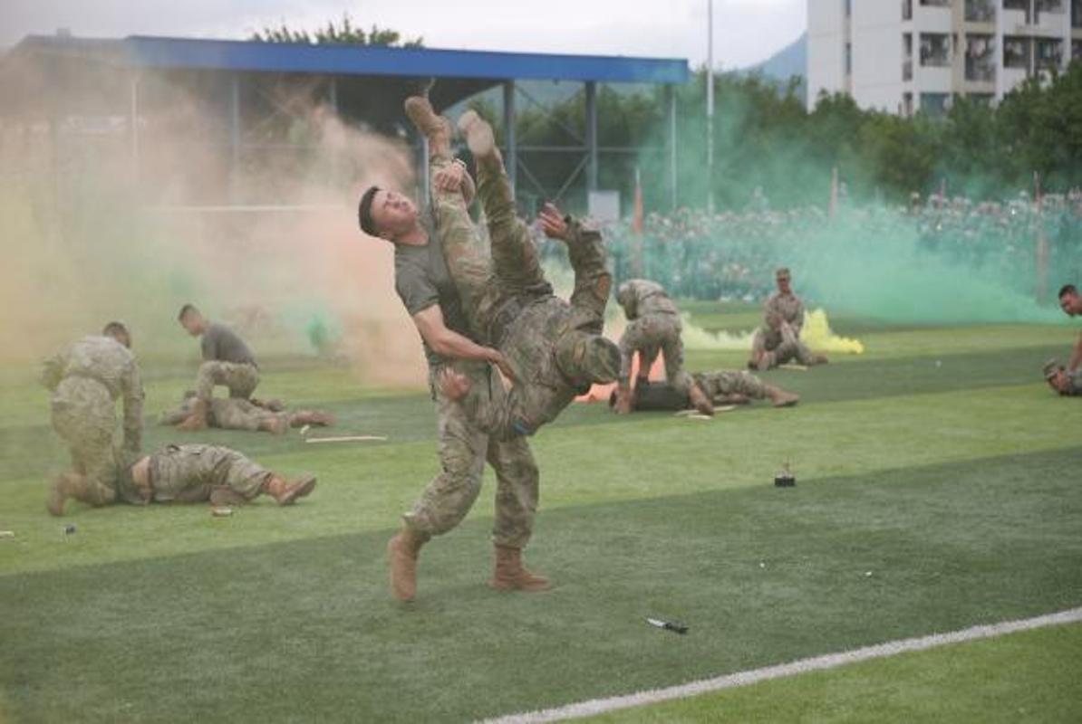 在軍事技能展示環(huán)節(jié),參訓(xùn)學(xué)生帶來了“刺殺操”“格斗拳”和“匕首操”等精彩表演。承訓(xùn)教官代表展示了反恐場(chǎng)景,體現(xiàn)了戰(zhàn)術(shù)配合與高效的應(yīng)急處置能力,精準(zhǔn)的動(dòng)作、嚴(yán)謹(jǐn)?shù)淖藨B(tài),讓在場(chǎng)學(xué)生深受震撼,進(jìn)一步激發(fā)了大家對(duì)軍人的崇敬之情。
