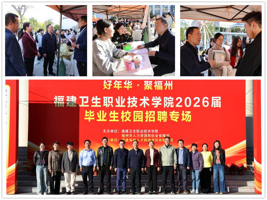11月20日,福建衛(wèi)生職業(yè)技術(shù)學(xué)院臻善樓前廣場徹底“燃”了——以“好年華?聚福州”為主題的2026屆畢業(yè)生秋季校園專場招聘會,成了校企雙向奔赴、供需精準對接的“求職熱場”。