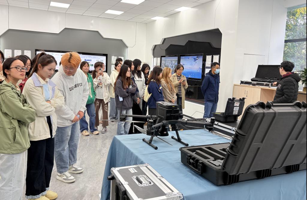 研學(xué)首站抵達大數(shù)據(jù)科技園B5棟,園區(qū)工作人員詳解科技園整體規(guī)劃、入駐企業(yè)布局及功能分區(qū),讓師生系統(tǒng)認知大數(shù)據(jù)產(chǎn)業(yè)集群運營模式。隨后,師生走進園區(qū)入駐企業(yè)福建星網(wǎng)安信息技術(shù)有限公司,實地參觀低空無人機安全防護技術(shù)研發(fā)場景,近距離觀摩設(shè)備研發(fā)流程與核心技術(shù),直觀感受大數(shù)據(jù)在安全防護領(lǐng)域的創(chuàng)新應(yīng)用,有效拓寬專業(yè)視野。