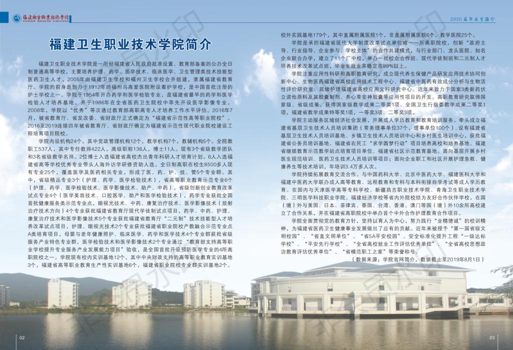 福建衛(wèi)生職業(yè)技術(shù)學(xué)院2020屆畢業(yè)生推介冊