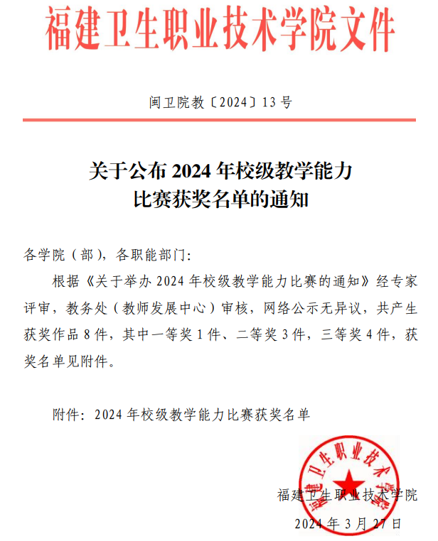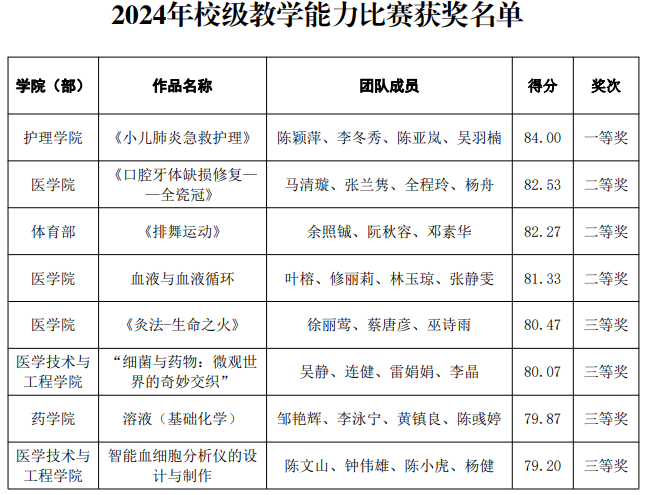 關(guān)于公布2024年校級(jí)教學(xué)能力比賽獲獎(jiǎng)名單的通知