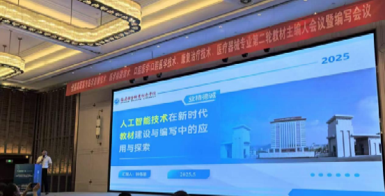 本次共派出13位教師參與到了10本教材的編寫工作,其中鐘偉雄、陳文山兩位老師分別擔(dān)任醫(yī)療器械類專業(yè)《電子技術(shù)應(yīng)用》、《醫(yī)用電子儀器》的主編工作;另有5位老師擔(dān)任各自相關(guān)專業(yè)的副主編工作。鐘偉雄老師受邀在會(huì)上以《人工智能技術(shù)在新時(shí)代教材建設(shè)與編寫中的應(yīng)用與探索》為題作專題報(bào)告,展示了AI在內(nèi)容生成、個(gè)性化學(xué)習(xí)資源開發(fā)與質(zhì)量評(píng)估中的最新實(shí)踐。