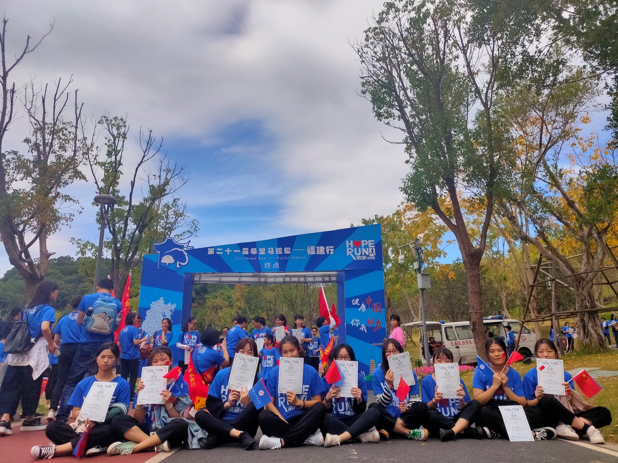 11月2日,主題為“健康中國 你我助力”的2019年第二十一屆希望馬拉松(福建行)在福州市晉安區(qū)牛崗山公園鳴槍開跑。來自我校2018級(jí)醫(yī)學(xué)影像(放療班)的全體同學(xué)身著藍(lán)色愛心T恤與醫(yī)務(wù)工作者、癌癥康復(fù)者及社會(huì)各界愛心人士健步開跑滿懷熱情共同為腫瘤患者和中國癌癥防治研究事業(yè)獻(xiàn)上自己的一份愛心。
