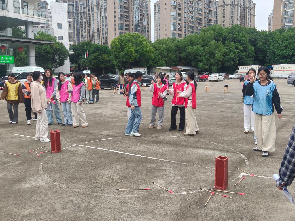 在圓盤運球、投壺、兩人三足、桃花桃花朵朵開等團隊項目中,同學(xué)們積極參與,奮勇爭先。圓盤運球時小心翼翼,投壺時全神貫注,兩人三足齊心協(xié)力向前沖,桃花朵朵開時迅速抱團,充分展現(xiàn)出團結(jié)拼搏的精神。