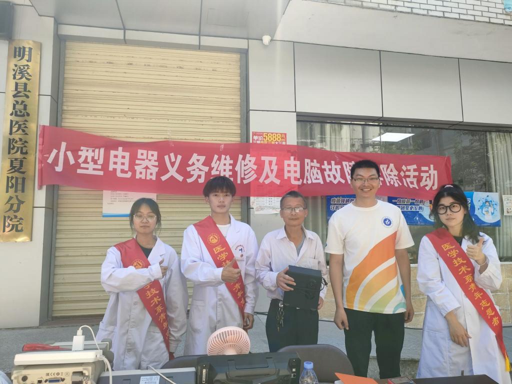 為了能將所學(xué)知識轉(zhuǎn)化為實踐技能服務(wù)群眾,醫(yī)學(xué)技術(shù)系第二黨支部雙帶頭人黨支部書記、醫(yī)學(xué)技術(shù)系副主任鐘偉雄帶領(lǐng)創(chuàng)新創(chuàng)業(yè)訓(xùn)練營的同學(xué)們加入醫(yī)學(xué)技術(shù)系暑期“三下鄉(xiāng)”紅色筑夢隊,于6月30日赴三明市明溪縣夏陽鄉(xiāng)開展小型電器義務(wù)維修及電腦故障排除社會實踐活動。醫(yī)學(xué)技術(shù)系黨總支書記柯瓊鶯、黨總支副書記林燕、醫(yī)學(xué)技術(shù)系關(guān)工委委員鄭韻芳、醫(yī)學(xué)技術(shù)系團總支書記林詩雨、副書記鄭語琪一同參與志愿服務(wù)。