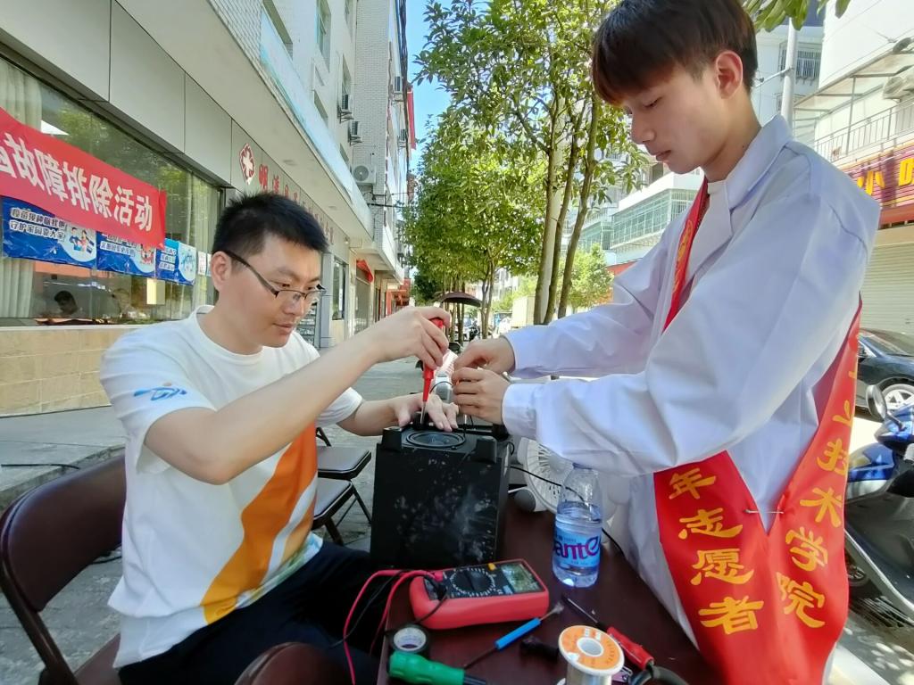 在老師的指導(dǎo)下,同學(xué)們經(jīng)過一番細(xì)致耐心的檢修,讓存在故障的小家電“重獲新生”。一位理發(fā)店老板看到電動剃須刀又能重新轉(zhuǎn)動,非常開心直言要為同學(xué)們免費理發(fā)表達(dá)感謝之意。大部分村民們都滿意地帶走修好的電器,一些村民表示,雖然缺少特殊配件無法現(xiàn)場維修好,但是至少了解到損壞的原因,能精準(zhǔn)購買零配件找人修好的。村民們開心的笑容以及樸實無華的話語滿含著對同學(xué)們的認(rèn)可,也是大家努力學(xué)習(xí)技能的最好回報。