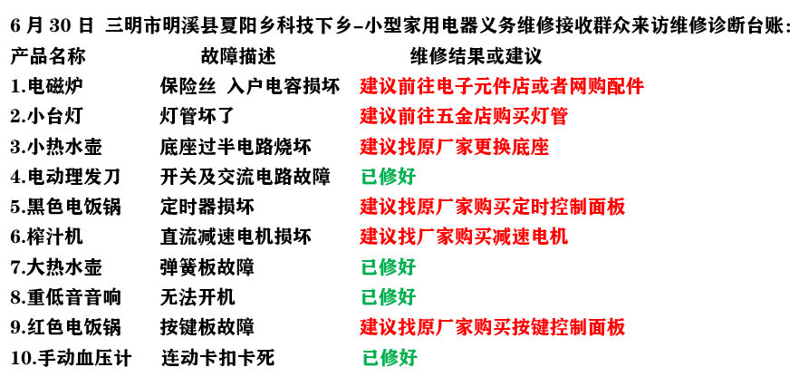 以下是紅色筑夢隊在本次“三下鄉(xiāng)”義務(wù)家電維修社會實踐活動中的成果: