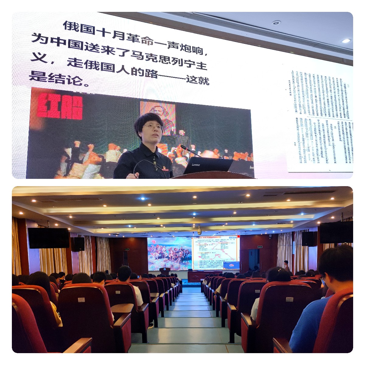 本次業(yè)余分黨校培訓邀請馬克思主義學院老師為學員深入講授黨的基本理論知識。龍慧老師從習近平總書記建軍思想展開,深入闡述如何學習貫徹習近平新時代中國特色社會主義思想;胡濟林老師講授《科學理解中國共產黨的指導思想》,全面講解了馬克思列寧主義、毛澤東思想以及中國特色社會主義理論體系;陳洪月老師講授黨的十九屆六中全會精神專題黨課,深入解讀《中共中央關于黨的百年奮斗重大成就和歷史經驗的決議》;江洪老師講授《馬克思主義宗教理論與黨的宗教政策》,引導學員們正確認識科學與宗教的關系,樹立科學世界觀。