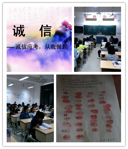 “學(xué)道存乎信,立信存乎誠”,師生們合唱歌曲《誠信》,表達(dá)了對誠信的贊美和向往,拉開了道德講堂的序幕。誠信是中華民族的傳統(tǒng)美德,孔子和陶行知等教育家的治學(xué)也以誠信為綱,同學(xué)們聲情并茂地誦讀了先賢們的諄諄教誨,理解著誠信的厚重。隨后,輔導(dǎo)員結(jié)合商鞅的立木為信、周幽王烽火戲諸侯的史實,通過對比說明誠信的重要性,并引導(dǎo)同學(xué)們以“講誠信吃虧嗎”為辯題,講述一個身邊的誠信故事。通過多方思維和經(jīng)驗的碰撞與討論,大家更深刻地理解了誠信的重要性。緊接著利用教室多媒體,師生共同觀看教育部誠信考試宣傳片,重讀學(xué)??荚囘`紀(jì)的處理規(guī)定,以規(guī)章紀(jì)律強(qiáng)調(diào)不誠無信的后果。最后由班委帶頭,進(jìn)行集體宣誓“期末考試是檢驗我們的學(xué)習(xí)狀況,不僅是一場文化考試,也是一場道德品質(zhì)的考試,我們將誠信應(yīng)考!”,同時也以承諾書形式記錄下同學(xué)們的決心。