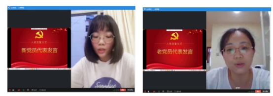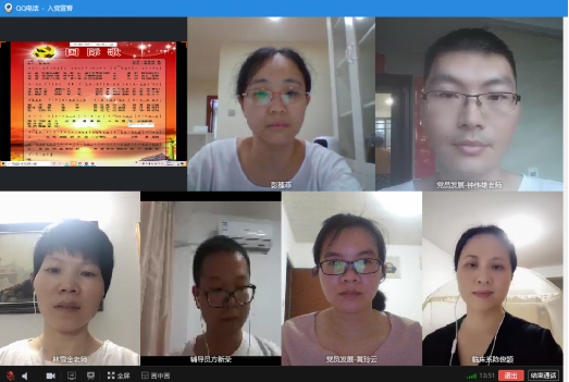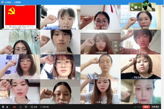 入黨宣誓儀式伊始,全體黨員起立,線上共同唱響了莊嚴(yán)的國際歌。隨后,方新榮老師宣讀了參加本次入黨宣誓儀式的19名新黨員名單。在第二黨支部書記鐘偉雄老師的帶領(lǐng)下,謝鄭楠等19名新入黨的預(yù)備黨員在“云端”面向黨旗,舉起右手,莊嚴(yán)宣誓,表達(dá)對黨的忠誠、為共產(chǎn)主義事業(yè)奮斗終身的決心。