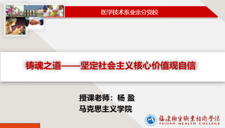6月15日,醫(yī)學(xué)技術(shù)系第十八期業(yè)余分黨校培訓(xùn)班第六課開講,馬克思主義學(xué)院楊盈老師擔(dān)任此次課程的主講人。本次課程的主題是“鑄魂之道——堅(jiān)定社會(huì)主義核心價(jià)值觀自信”。她從“價(jià)值”切入,為學(xué)員們講解了何為“社會(huì)主義核心價(jià)值觀”,從國內(nèi)和國際兩個(gè)層面為大家闡述分析了為什么要培育和踐行社會(huì)主義核心價(jià)值觀。她號(hào)召大家要堅(jiān)定價(jià)值觀自信,爭(zhēng)做社會(huì)主義核心價(jià)值觀模范踐行者。