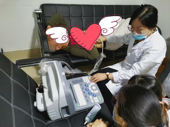 腹部超聲檢查,健康體檢在身邊。醫(yī)學(xué)影像技術(shù)專業(yè)的師生通過便攜超聲設(shè)備,為社區(qū)居民開展腹部超聲檢查,并結(jié)合健康宣教,耐心解釋檢查結(jié)果,提供進一步就醫(yī)指導(dǎo)。該項目服務(wù)受到歡迎,排隊參與活動叔伯阿姨們都表示免費超聲檢查讓他們對自身的健康狀況更加了解,對自己的就醫(yī)方向更加清晰。