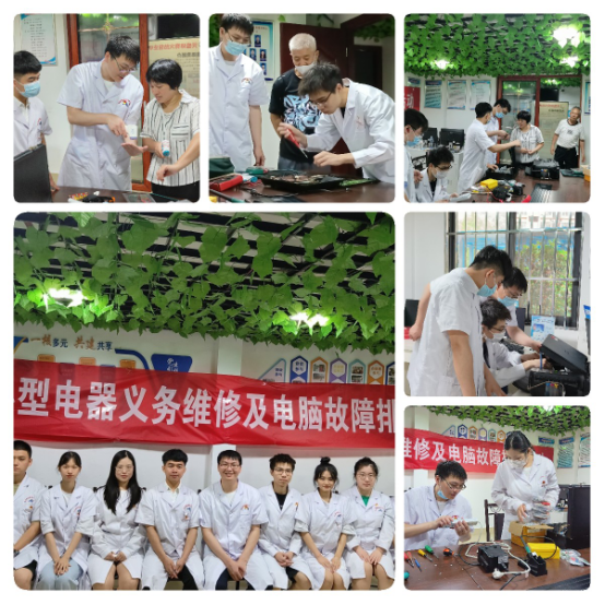 設(shè)備維修,排除故障,很便民。醫(yī)學(xué)技術(shù)系“雙帶頭人”黨支部書(shū)記鐘偉雄帶領(lǐng)智能醫(yī)療裝備技術(shù)專業(yè)的師生,利用專門維修設(shè)備,為社區(qū)居民檢修打印機(jī)、體溫測(cè)量?jī)x、話筒、排插、電磁爐等日常辦公和生活家電。精湛的維修技術(shù)讓一個(gè)個(gè)小故障迎刃而解,“這些學(xué)生們很專業(yè)很厲害呀”,社區(qū)大姐滿意地點(diǎn)贊。