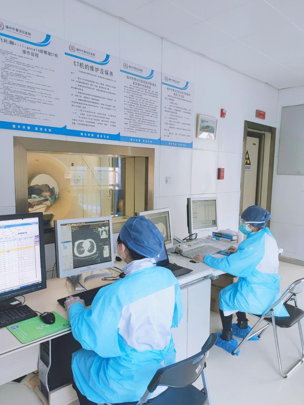 醫(yī)學(xué)影像科診斷報告的質(zhì)量與速度是抗擊新冠肺炎的關(guān)鍵點(diǎn)。晉安區(qū)醫(yī)院的醫(yī)學(xué)影像科,不僅肩負(fù)院內(nèi)防控工作,還負(fù)責(zé)轄區(qū)內(nèi)多個衛(wèi)生院轉(zhuǎn)送病人的檢查工作,所以保證影像診斷結(jié)果的準(zhǔn)確及時,那就是與時間賽跑。